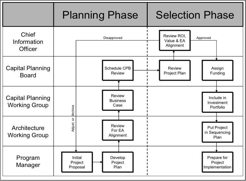 The diagram follows the IDEF-0 modeling technique to show what the inputs, controls, outputs, and mechanisms are for each step in the process. This method for modeling business processes is known as the Integration Definition for Function (IDEF) technique. Developed in the mid-1970’s for modeling complex military projects,